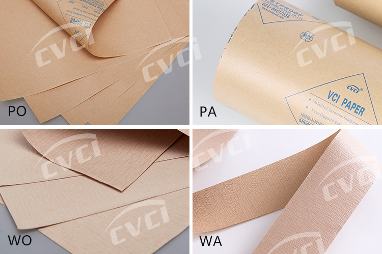 將VCI(氣相緩蝕劑)含浸與平紋或皺紋中性原紙上起到防銹目的,在中性原紙上可通過復(fù)合PE層起防水防潮目的。
