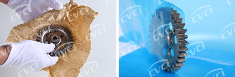 2、高性能的VCI均勻包含于防銹材料內(nèi)部,包裝后迅速發(fā)揮防銹效能;